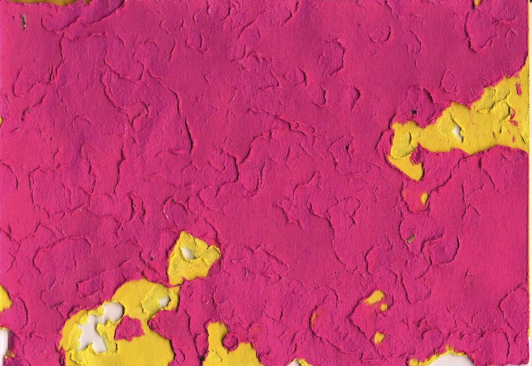 This work draws on the productivity of snails in my letterbox. After observing their voracious appetite for my letters I decided to collaborate with them to create new works by introducing coloured card in the letterbox.